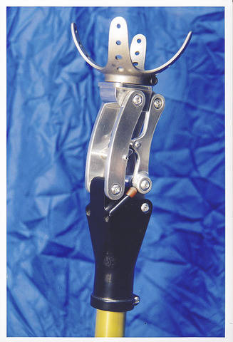 Het vervaardigen, assembleren en functie-beproeven van een demonstratiemodel volgens een nieuw principe van een prothetisch kniegewricht. Het toekomstige koolstofvezel gewapende kunststofdeel is voor de prototyping vervaardigd middels Solid Modeling.