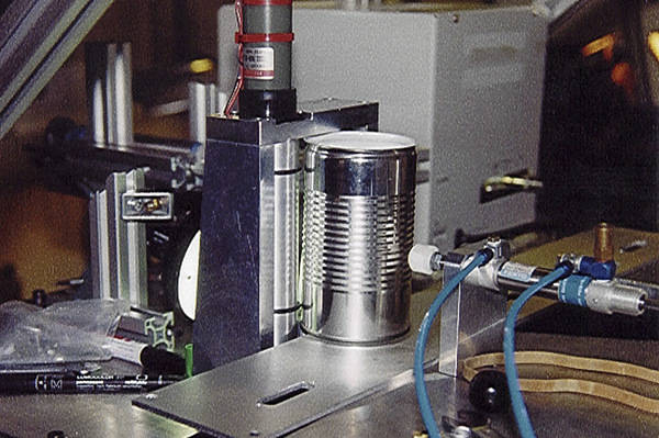 Een sorteermachine om blikken bussen met een visueel minimaal waarneembare fout in de felsrand te kunnen herkennen. De machine bestaat uit een frame met fundatieplaat met daarop een rotatiemechanisme, product- en afkeurpushers, een Visioncontroller en een besturingseenheid.